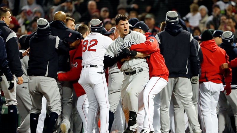 I realise my puns need work, but that notwithstanding, the Sox and Yankees got it on at Fenway on Wednesday night. These two teams have always been known to enjoy a good punch-up (lookin’ at you, 2004!) but they usually have the decency to wait a few months. At the end of this punch-up, reports claimed that up to 10 players would be fined or suspended by the league.