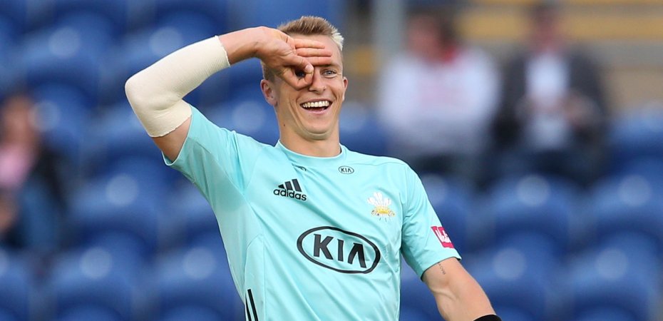 Jacks was the next wicket to fall, caught behind by Chris Cooke on the bowling of Graham Wagg. Spinner Andrew Salter came on and bowled a beautiful spell, picking up the wickets of Finch, Rikki Clarke, Tom Curran and Ollie Pope, finishing with figures of 23-4 from his 4 overs. The pick of his wickets was a grab from over the boundary by Billy Root, making the pass to himself with ease.